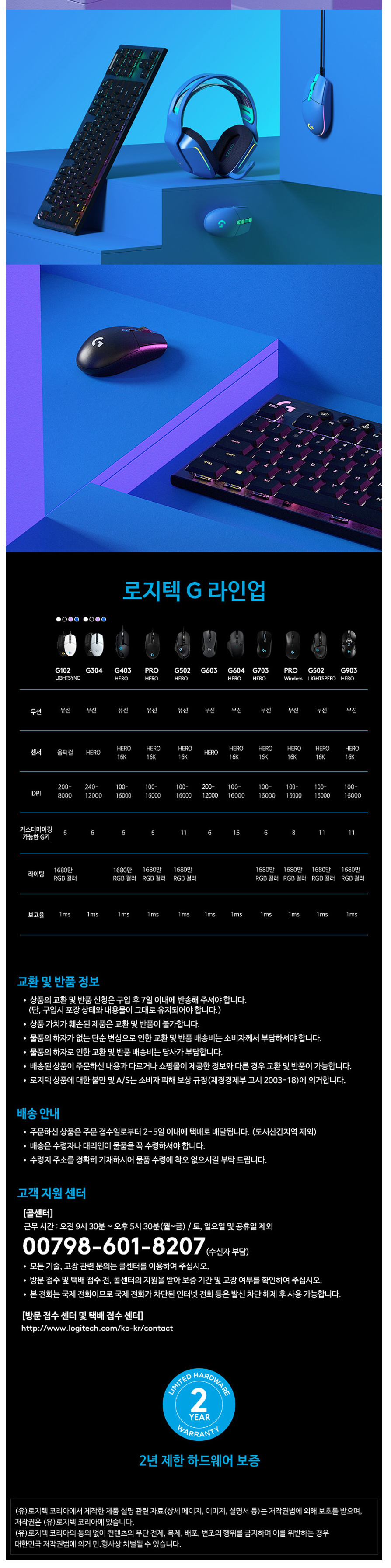 | A/S 책임자와 전화번호 | 상품페이지 참고 |