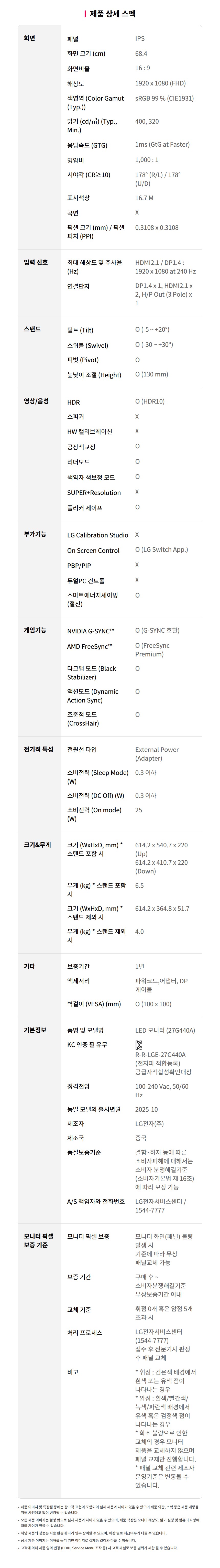 | 품질보증기준 | 상품페이지 참고 |