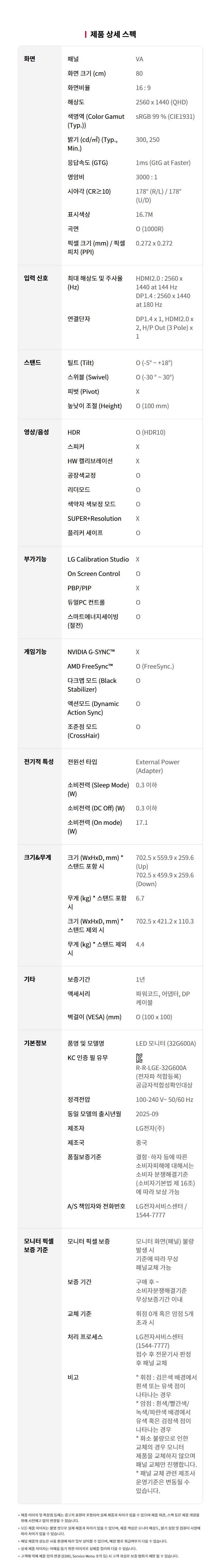 | 품질보증기준 | 상품페이지 참고 |
