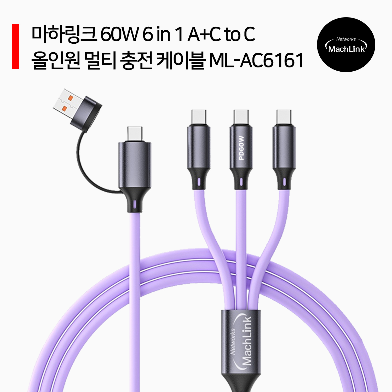 [마하링크] PD 60W 6in1 멀티 케이블 ML-AC6161 (1.2m)