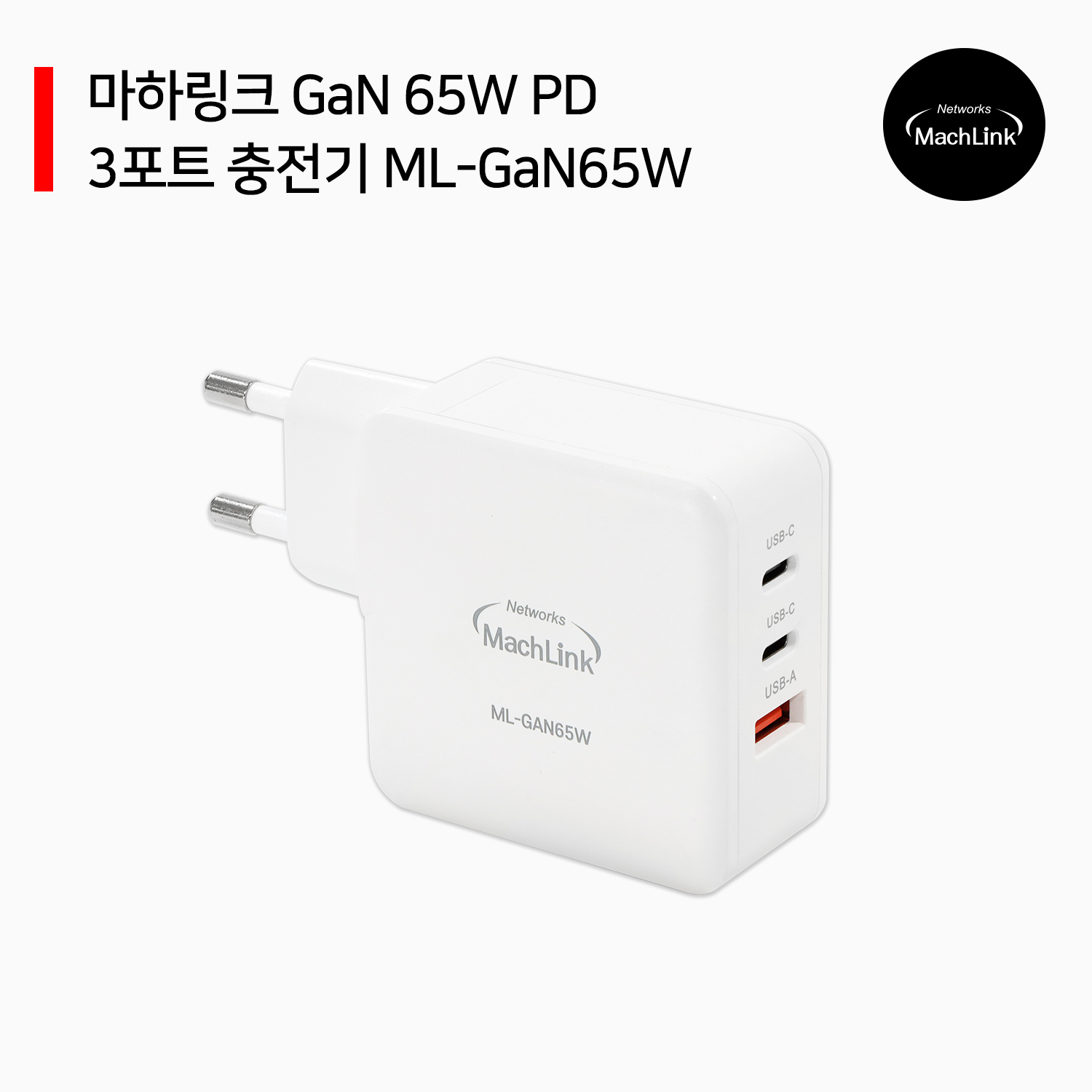 [마하링크] PD 65W PPS GaN 3포트 초고속 멀티 충전기 ML-GAN65W