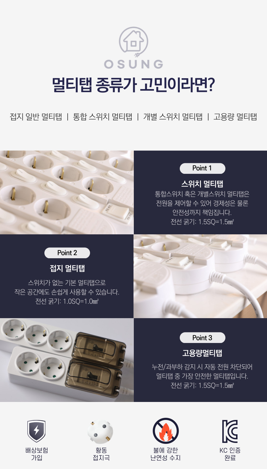 [안전한 국산 멀티탭 오성정밀 오성탭]