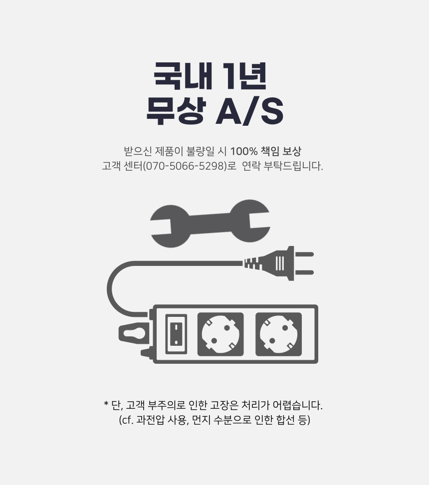 제품 소비 전력 1000W 이하 → 항상 사용하기 때문에 NO 스위치 → 접지멀티탭