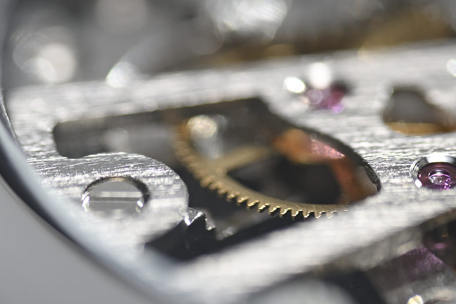 거의 등배 비율로 포착해 시계의 질감을 리얼하게 재현한 사진입니다. 광택이 나는 금속 피사체이지만, 콘트라스트가 높은 부분에서도 색 번짐을 찾아볼 수 없고, 배경 흐림 효과도 아름답게 재현되어 있습니다.