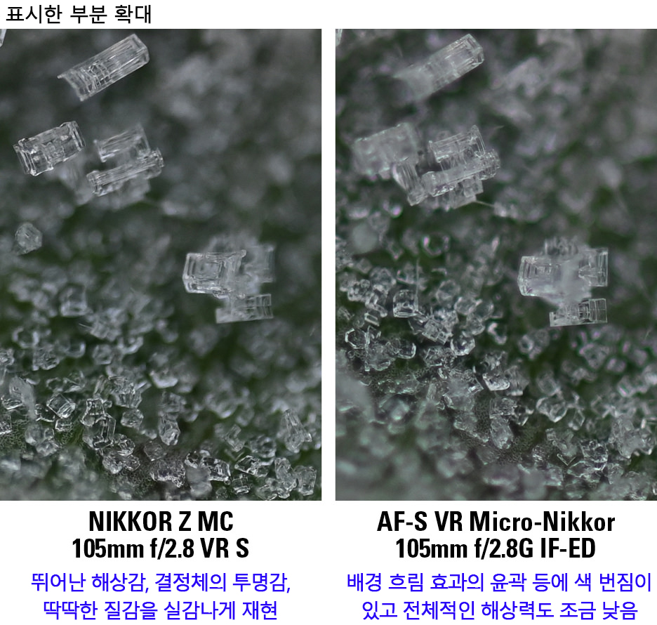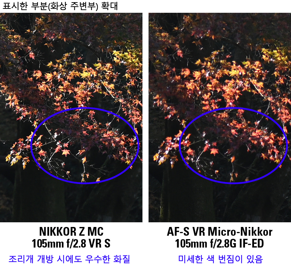 해상도 비교 [조리개 개방 시, 거의 등배율]