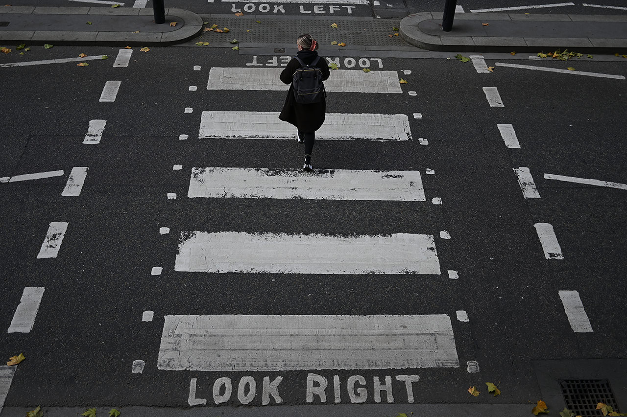 중앙을 건너는 인물을 강조하기 위해 횡단 보도를 초점 거리 39mm 상당(35mm 판 환산)의 화각으로 스냅촬영하였습니다. 인물이 최적의 위치에 들어서는 순간 셔터를 눌렀습니다. 풀사이즈나 APS-C 사이즈, 양쪽 모두 적당한 화각을 얻을 수 있는 활용도가 높은 렌즈입니다.