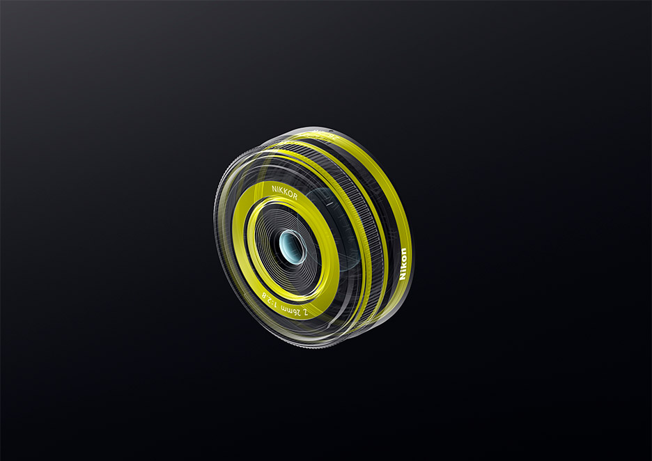 비구면 렌즈형식 니콘 Z 마운트 초점 거리 26mm 최대 구경비 1 : 2.8 렌즈 구성 6군 8매(비구면 렌즈 3매) 화각 79° (촬상 범위 FX)
