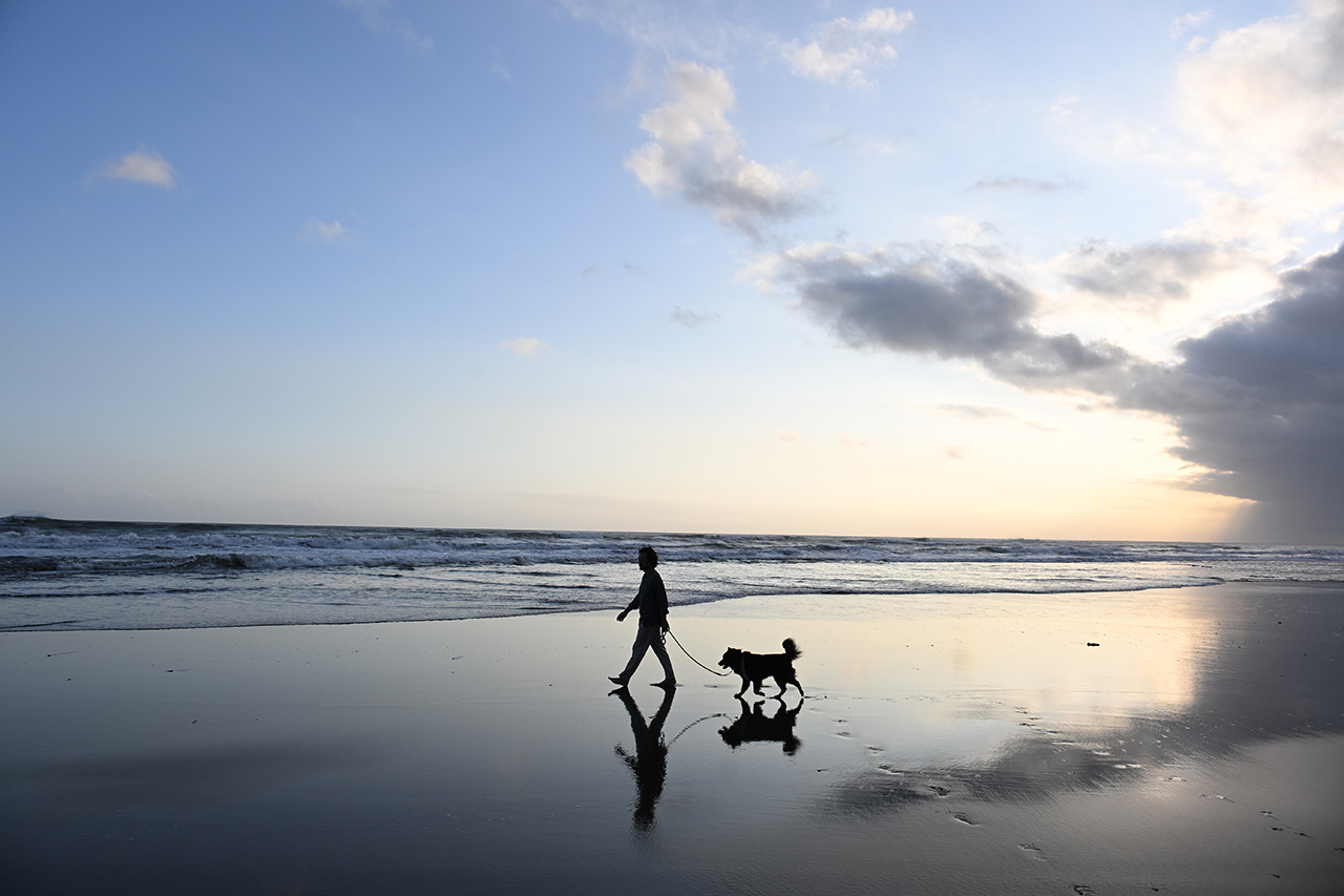 조용히 해가 저무는 해변에서 개를 데리고 산책하는 인물을 담았습니다. 빛과 색의 그라데이션이, 아름답게 물이 잠긴 모래사장과 하늘이 펼쳐진 풍경을 광각단의 16mm(35mm판 환산 시 24mm 상당)로 촬영했습니다. 피사체를 선명하게 포착하는 묘사 성능에 의해 인물과 개의 작은 실루엣도 디테일까지 깨끗하게 찍을 수 있었습니다.