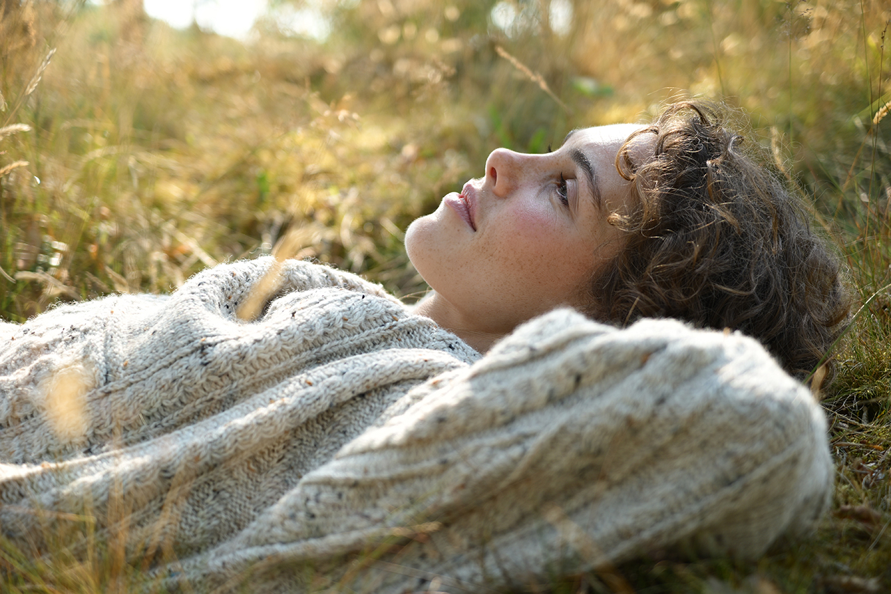 망원단의 50mm(35mm판 환산 시 75mm 상당)는, 가족 등의 친밀한 인물의 촬영에 딱 좋은 초점 거리입니다. 잔디 위에 누워있는 인물에 다가가 자연스러운 표정을 촬영했습니다. 개방 F2.8이 만들어 내는 전후의 큰 배경 흐림이, 인물의 부드러운 인상을 돋보이게 해줍니다.