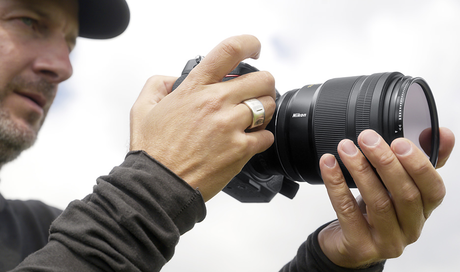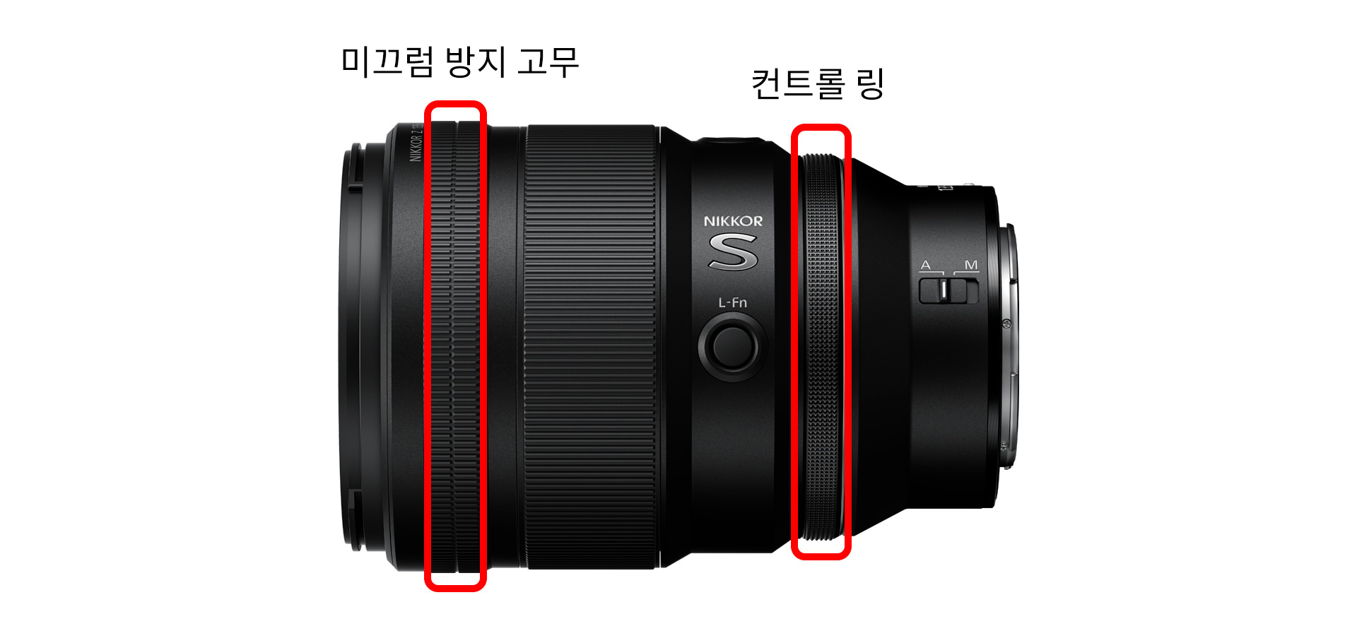 Z 마운트의 대구경을 활용하여 마운트에서 렌즈 끝을 향해 단계적으로 펼쳐지는 탄력있는 디자인으로 단단한 인상을 줄 뿐만 아니라 손가락을 렌즈부에서 마운트까지 이동하기 쉽기 때문에 조작성 뛰어납니다. '조리개'나 '노출 보정' 등 카메라에서 설정한 기능을 변경할 수 있는 컨트롤 링은 기분 좋은 마찰감으로 부드러운 조작감을 실현합니다. 렌즈와 가까운 쪽에 미끄럼 방지 고무를 배치하여 손이 미끄러지지 않게 되어 있어 촬영 시 렌즈를 쥐기 쉬우며 안정적으로 카메라를 잡을 수 있습니다. 또한 확실히 쥔 상태에서 렌즈를 돌리기 쉽기 때문에 렌즈 교환이 편리합니다.
