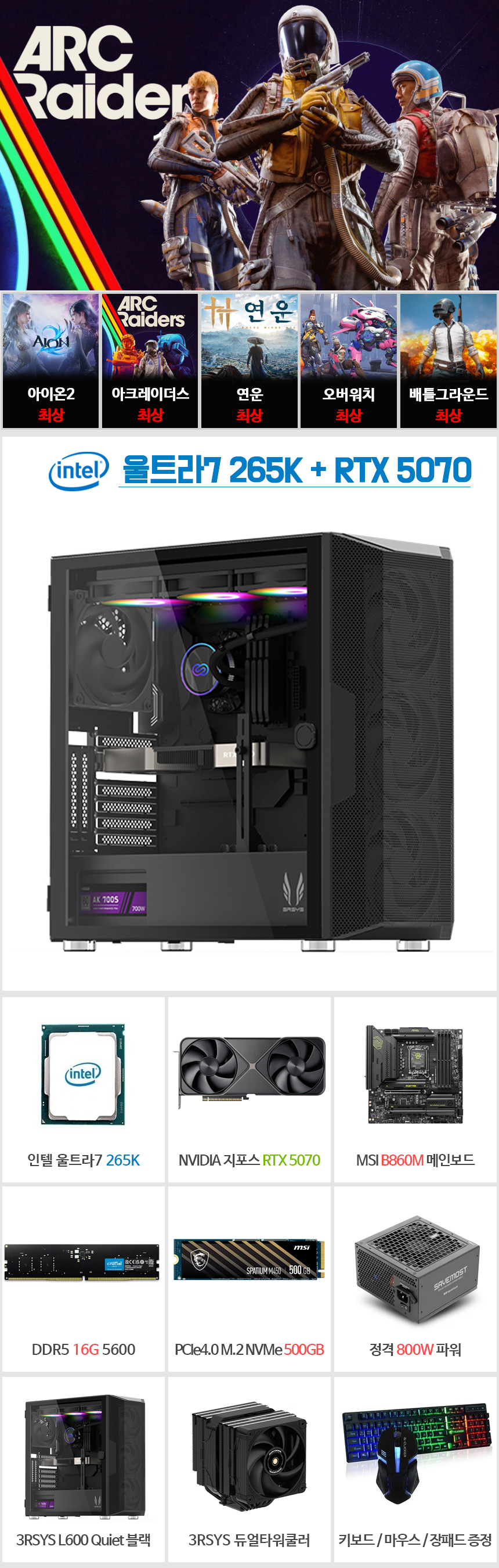 라이젠7 9700X + RTX5070 고사양 게이밍 조립컴퓨터